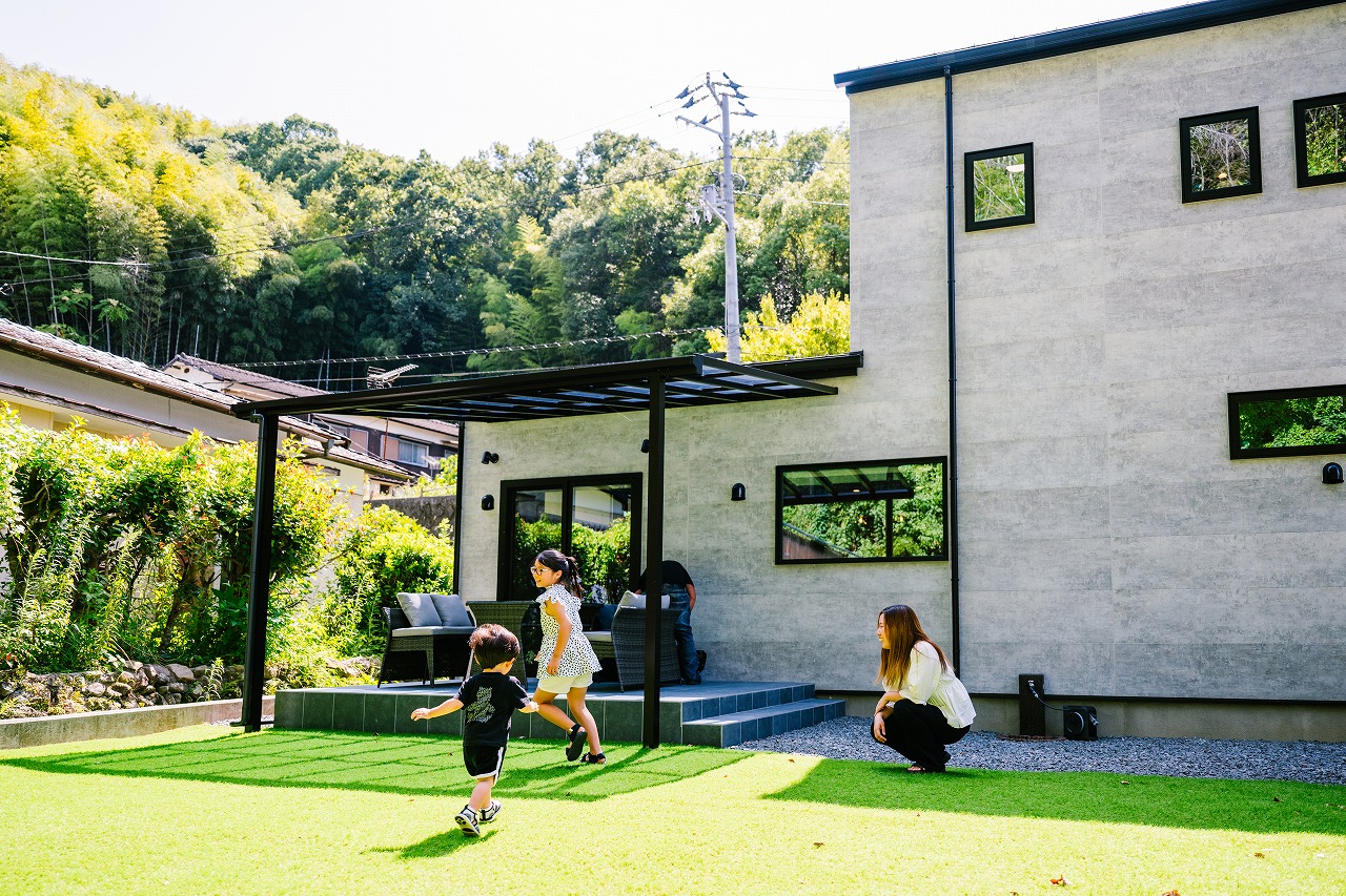デッキではバーベキューをしたり、子どもが遊んでいるのを大人が見守れるように希望しました。