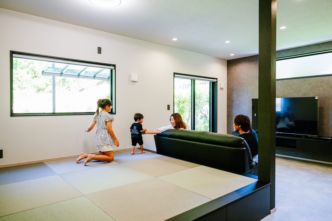 ホテルっぽさも実現しましたし、そんな中になじむ畳スペースも提案してもらって、昼寝や遊びに活躍してます。
